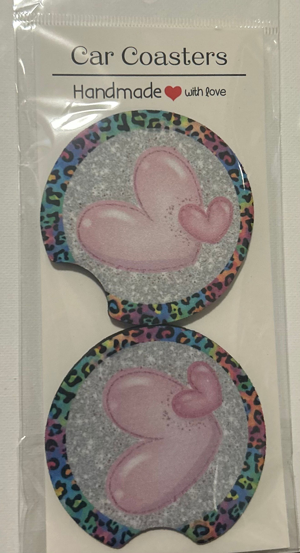 Colorful Heart Cheetah Print Car Coaster